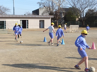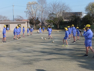 サッカー大会に向けた朝の練習が