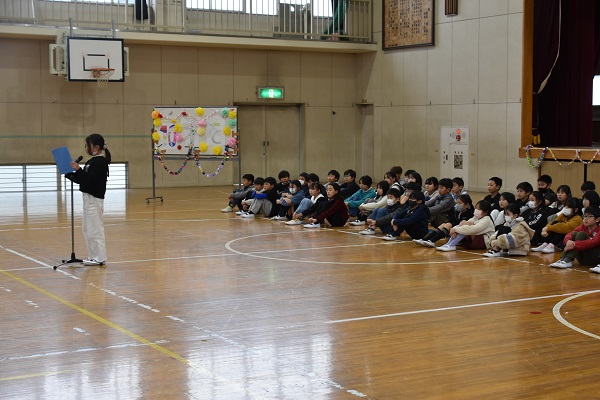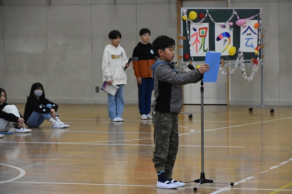 〇4年生は学年全体で「10歳を祝う会」 一生懸命に文を考え、発表の練習をして会に臨みました。