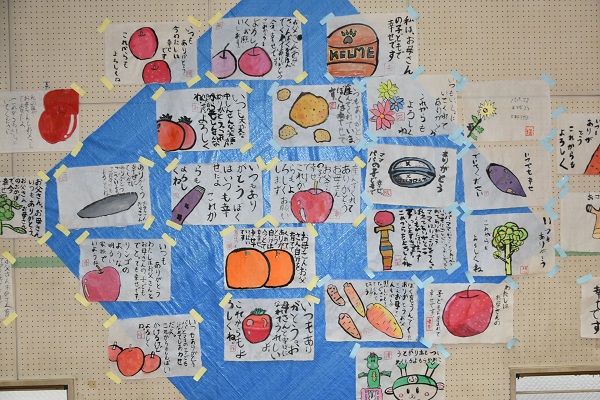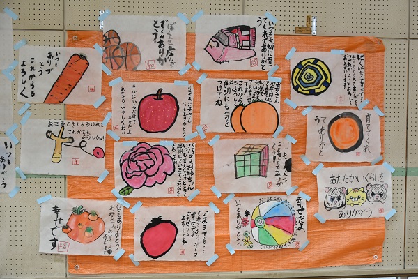 〇おうちの人への絵手紙?文も絵も素敵です。みんながんばりました。