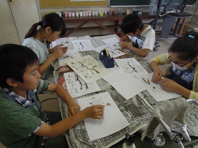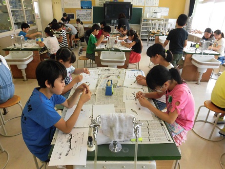 小さな魚(かたくちいわし)で、ふだんはあまり気にしませんが、ちゃんと体内には臓器があります。「これは、肝臓かな?」「あっ、浮き袋を見つけた!」