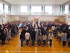 卒業生と在校生の呼びかけとともに歌う歌は、練習とは言え、本当に感動します。