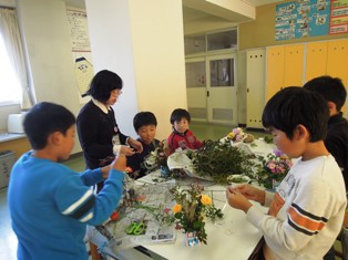 今日は2クラスが華道(生け花)についての話を聞き、
