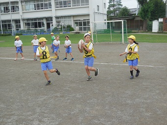 現在、タグラグビーがまとめに入っていて、どの児童も楽しそうに活動