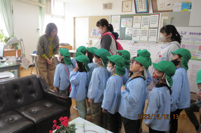 藤沢地区では小学校と幼稚園・保育園の交流を行っています。月曜日にはのぞみ保育園の年長さんが1年生の授業や校庭の様子等を見学にきました。保育園では、来年4月から始める小学校生活への準備が少しずつ始まっているようです。