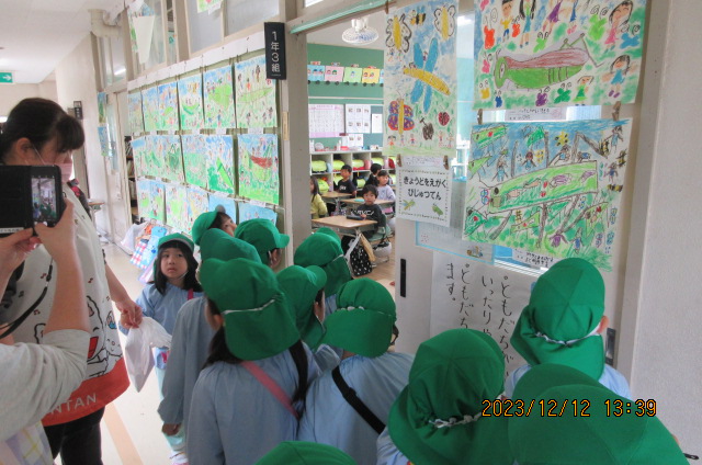 〇校長室で挨拶をして… 〇1年生の教室を見学して… 〇校庭でドングリを拾ってお帰りです。