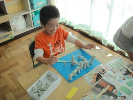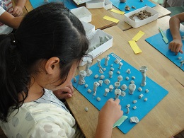 図工では、粘土を使って自分が住みたい町をつくりました。