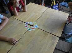 色の発音練習をした後に、カードを使ってビンゴゲームなどをして外国語に