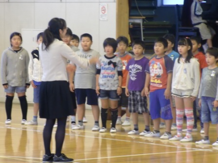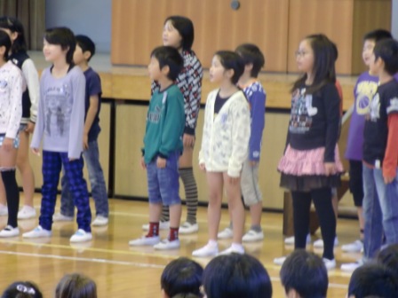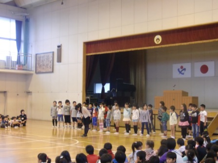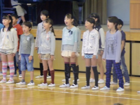 たくさんの児童、先生方がみている中、堂々とした態度で、きれいな歌声を響かせました。