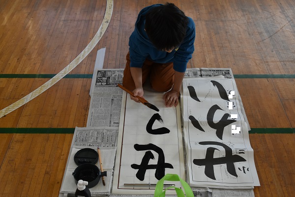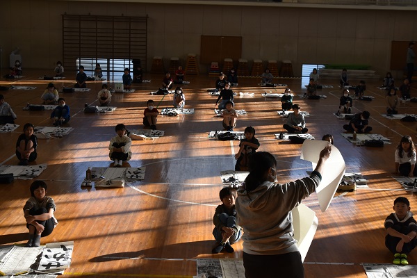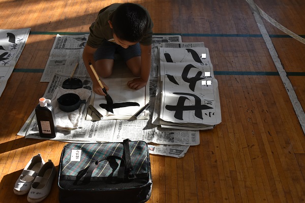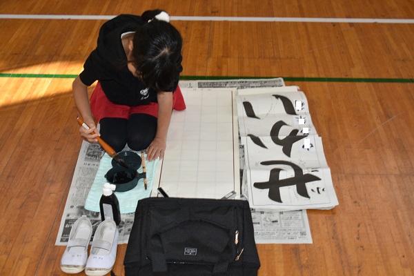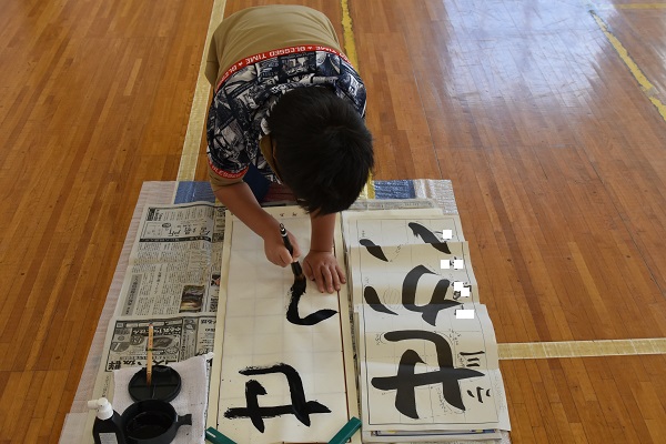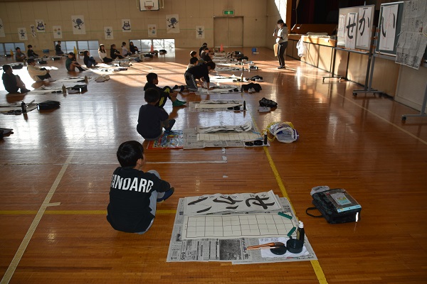 〇体育館ではこんな感じで書きぞめの授業が行われています。