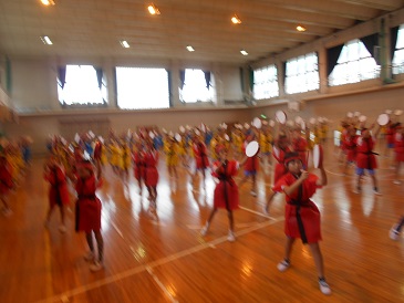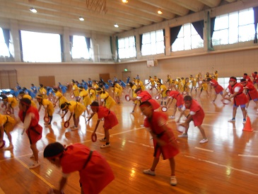 今日はあいにくの雨だったので、体育館で練習をしました。