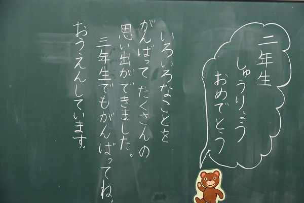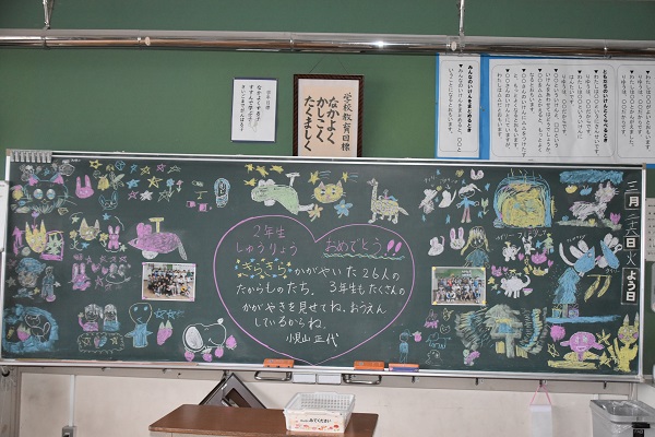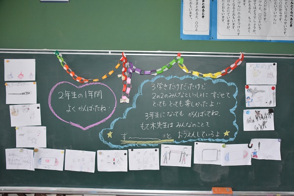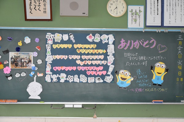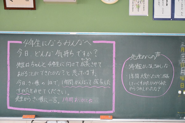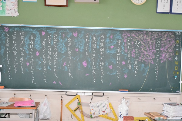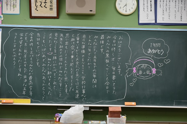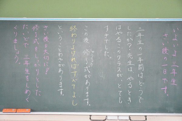 今日は修了式、学校の1年の締めくくりの日でした。朝、登校してきた子どもたちが見たのは…担任の思いでした。