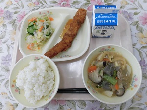 こしね汁今日の給食は、群馬県富岡市の献立郷土料理である