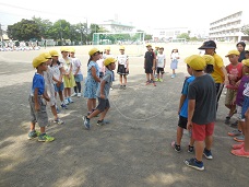 今日は、2組さんの司会進行による学年朝会でした。強い日差しの中