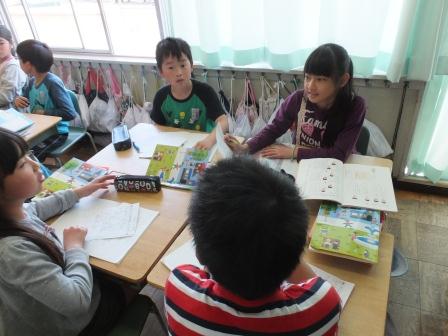 みんな楽しく、コミュニケーションをとりながら活動しています。国語の授業です。