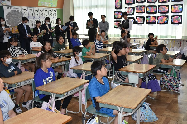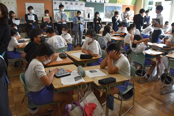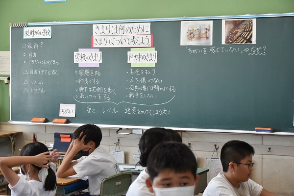 今日は北部地区の小学校の先生たちに3年1組と6年2組が道徳の授業を公開しました。授業後は2クラスの授業をもとに、研究協議を行いました。子供たちは真剣に授業に取り組んでいました。