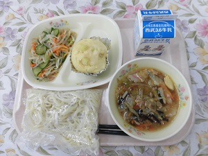 ねぎじゃこナムル今日の給食の石垣団子とは、さつまいもを使った