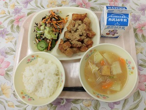 今日の給食の鶏肉と高野豆腐のごまだれは、