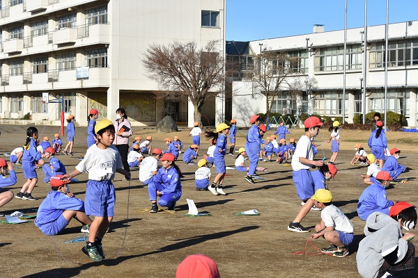 今日の業前は2,4,6年生のなわとび大会でした。強風の中でしたが、みんな元気に跳んでいました。冬の体力づくりにはなわとびが有効です。大会が終わっても継続できるといいですね。