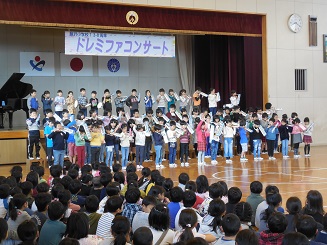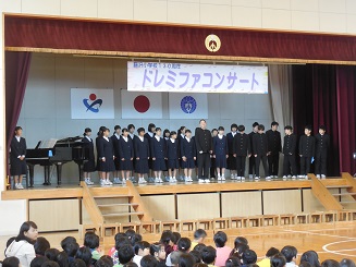 〇2年生と中学生による音楽朝会です。