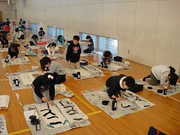 1・2時間目に書きぞめに取り組みました。