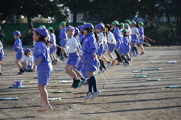 〇3年生 持久跳び目標3分をクリアしています。 〇5年生 最長の6分を目指します。