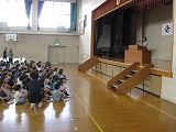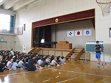 6月の全校朝会では、6月6日の「深谷あの子6つの誓い」の日について講話を行いました。特に「夢に向かて努力します」を中心に、藤沢地区出身で深谷市の親善大使でもある清水達也選手について紹介し、夢や目標をもって頑張ることの大切さを伝えました。