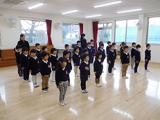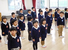 今日も、元気のよいあいさつと返事、そして、全力園歌を聞かせてくれました。