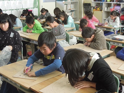 彫刻刀の使い方、いろいろなことを楽しみながら版画を行っています。