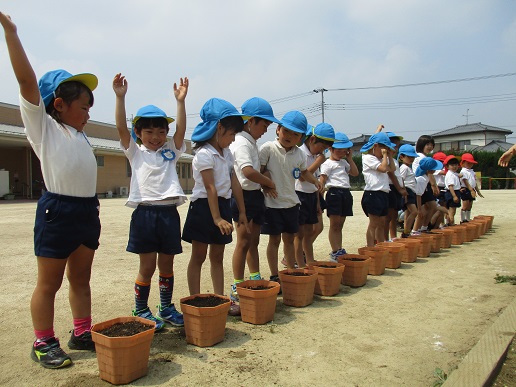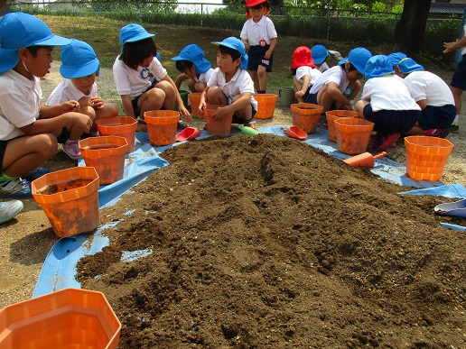 5歳児は朝顔・4歳児はひまわりの種を植えました。