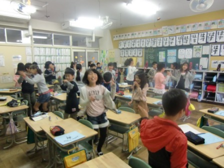 写真は「Hokey-Pokey」という曲に合わせて、踊っている様子です。