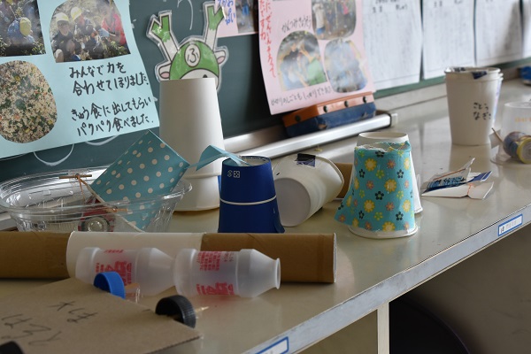 〇2年生は1年生を招いておもちゃフェスティバルを計画しています。一生懸命作ったおもちゃです。