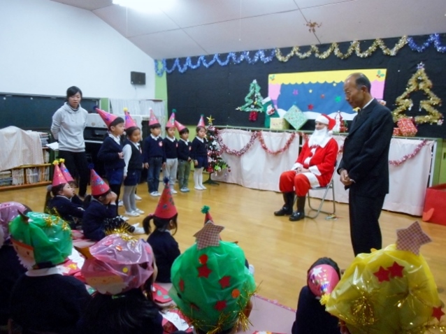 サンタさんの答えは、園長先生が子供たちにわかりやすく通訳してくださいました。絵文字:良くできました OK  サンタさんに聞きたいことを尋ねました。