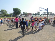 じゃんけん列車をしました。音楽が止まるとじゃんけんをし、負けた人が勝