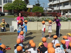 《 ↑ ゲームの説明中 》 《 ↑ じゃんけん列車ゲームの様子》