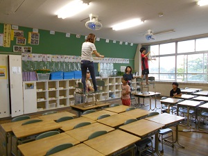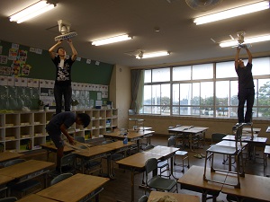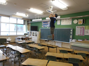 教室の窓、扇風機はもちろん、エアコンのフィルターそうじまで!!