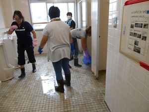 トイレ掃除では、尿石落とし、床磨きに加えて、換気扇も!!