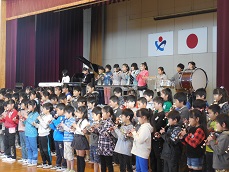 3年生の発表の前には、全校児童で練習してきたボディーパーカッシ