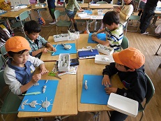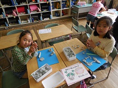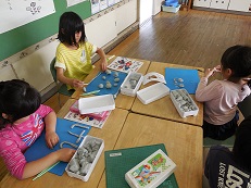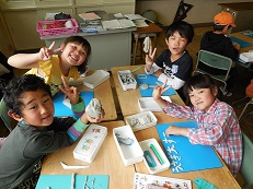 下の写真は、授業参観で保護者の方々に見てもらおうと、粘土で自由に表現しました。