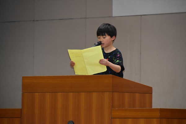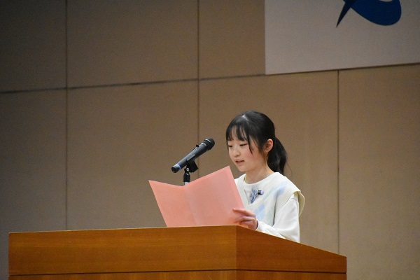 〇児童代表の言葉 1年間を振り返り、来年度に向けての思いを発表しました。