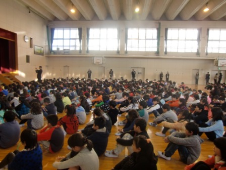 三学期初日は始業式があり、児童代表の言葉では2、4、6年生が担当しました。