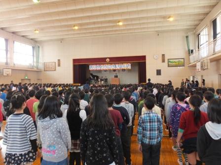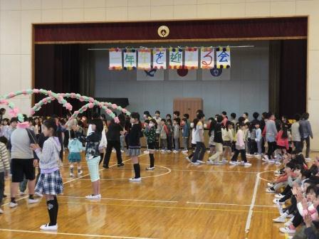 とても温かい拍手で一年生を迎えました。アーチ係の子や運営委員の子も自分の役割をしっかり果たすことができました。心をこめて校歌を歌いました。