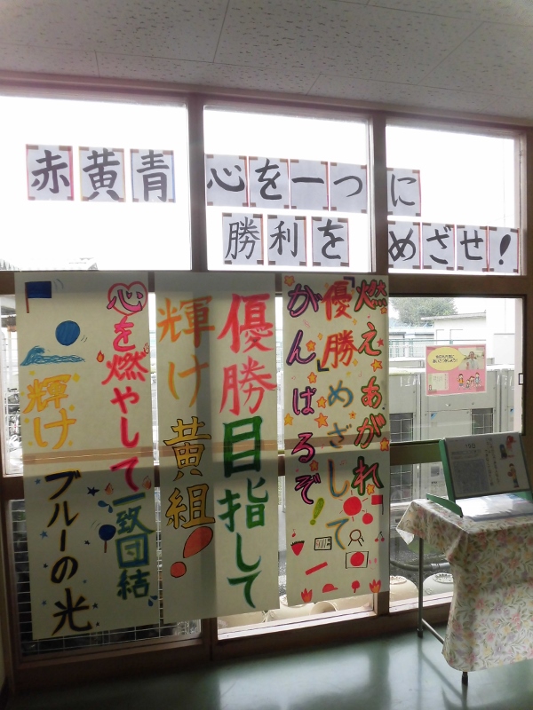 今回、運動会は、全校のテーマと各色のテーマがそれぞれ決まっています。