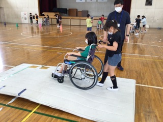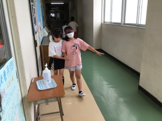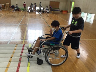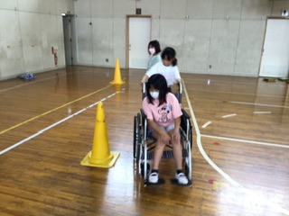 今日は社会福祉協議会の方に来校いただき、車椅子体験、高齢者体験、アイマスク体験を行いました。バリアフリーなどについて調べていましたが、実際に体験してみるとわかることもたくさんあったようです。