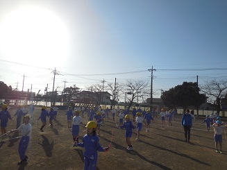 縄跳びやマラソン、ダッシュをしていました。