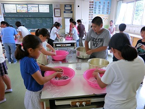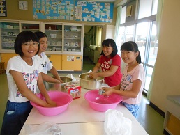 洗濯機に入れる前に、自分で洗いたいという児童もいました。