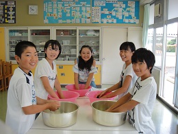 1人1たらいで汚れを一生懸命おとしました。