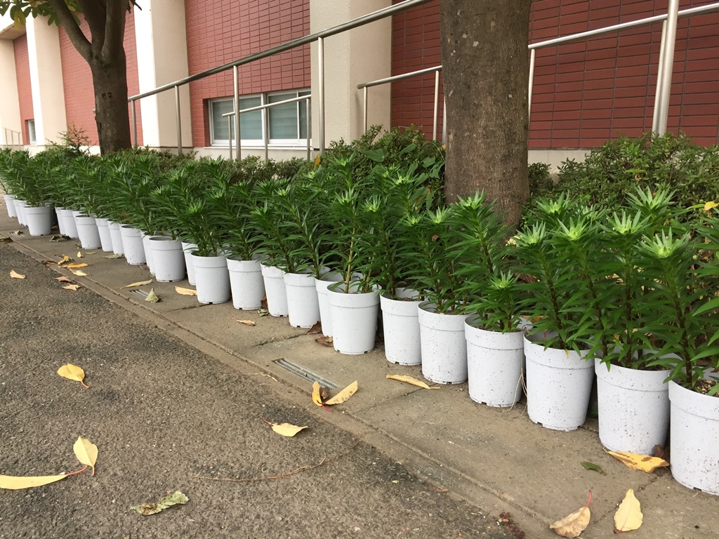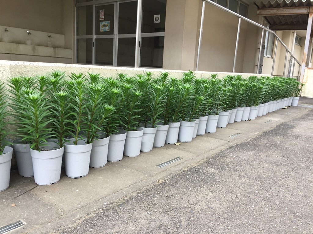 みんなが一生懸命に植えたユリが日々成長し、こんなにも大きくなりました!