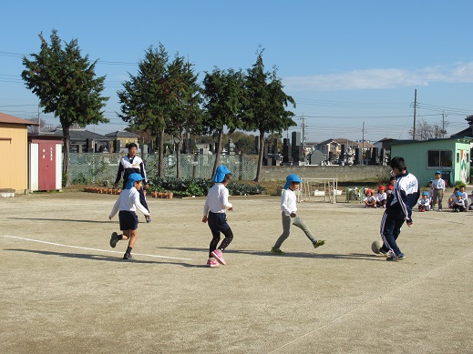 早速、サッカー教室で園児達と一緒に体を動かして遊びました!