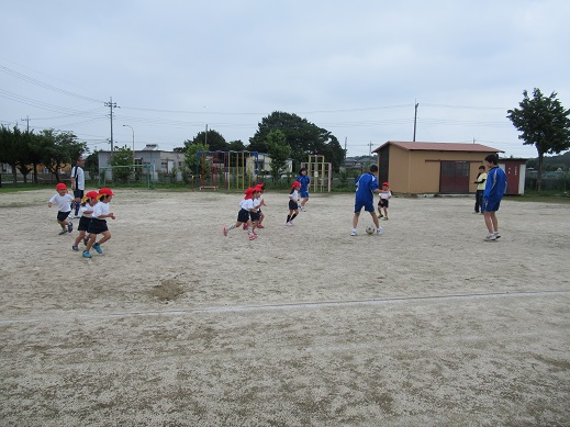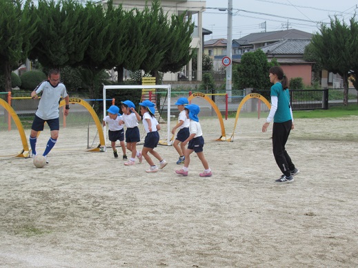 今日で3回目となるサッカー教室。早速、試合形式でどんどんボールに触れあっていきます。4歳児も、だいぶ慣れてきたようで、ボールの扱い方が少しづつ上達してきています。はじめは怖がっていたような子も、今では元気にボールを追いかけています!