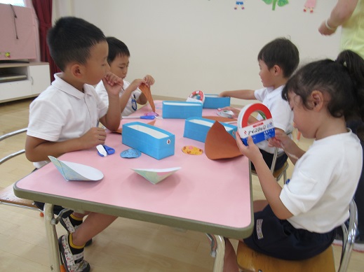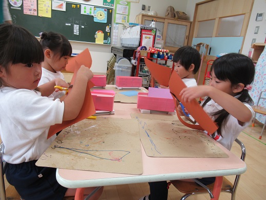 それから、アイスクリーム作りの続きをしました。コーンとなる部分を作り、そこに昨日作った丸いアイスをつけていきます。